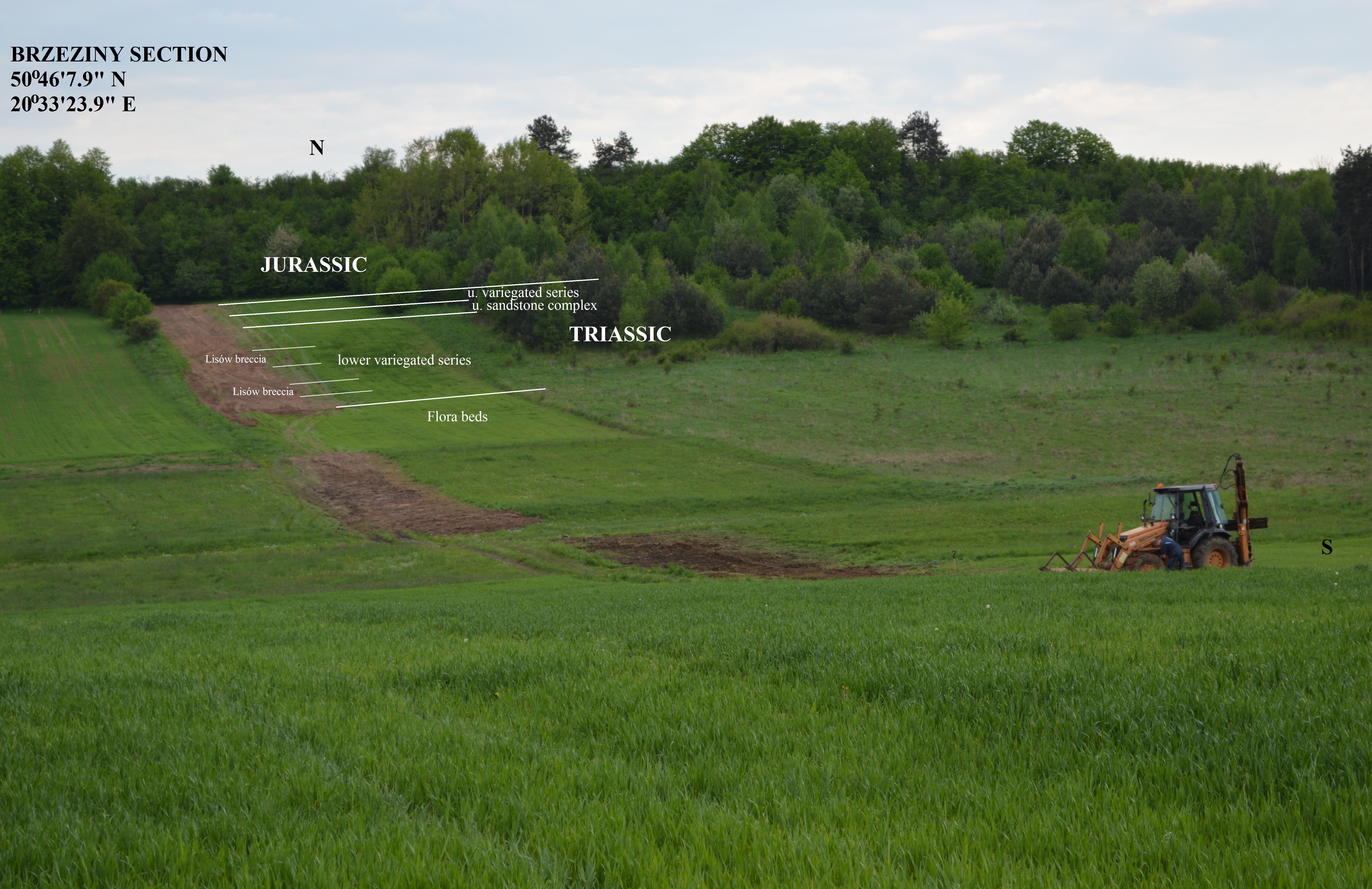 Magnetostratigraphy of the Keuper succession in the southern Mesozoic margin of the Holy Cross Mountains is presented based on investigations of two sections of Brzeziny and Wolica. They cut an ~60 m thick succession of variegated siltstones and claystones, which overlies the Reed Sandstone (Stuttgart Formation). The succession has been correlated with the Patoka Member of the Grabowa Formation, defined in the Upper Silesia region as an equivalent of the Steinmergelkeuper (Arnstadt Formation). The primary Late Triassic magnetization was obtained from component B carried by fine-grained haematite. Twelve magnetic polarity zones, six of normal and six of reversed polarity, have been defined. The obtained polarity pattern corresponds to the Norian (E13–E16 Newark zones) according to the Long-Rhaetian option of the Late Triassic Magnetic Polarity Time Scale. The mean normal polarity characteristic direction (N = 24, D/I = 31/62, k = 28.24, a95 = 6.04) differs significantly from the reversed one (N = 18, D/I = 223/-25, k = 16.38, a95 = 8.65): the primary magnetic signal is partly overlapped by component A carried by magnetite of recent viscuous remanent magnetization. Some samples do contain also coarse-grained haematite that, however, does not form any clustered magnetization. The palaeopole position calculated from the transposed reversed and normal polarity directions of component B corresponds to the Late Triassic (Norian) segment of the reference Baltica/Europe Apparent Polar Wander PathDownloads
